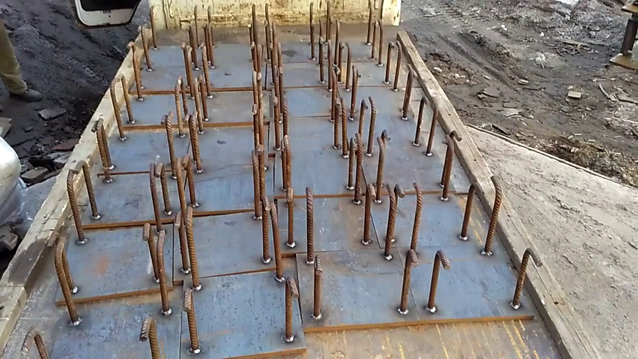• с приваренными под разными углами (наклонное, параллельное, комбинированное расположение) к пластине анкерами, штырями и пр.;